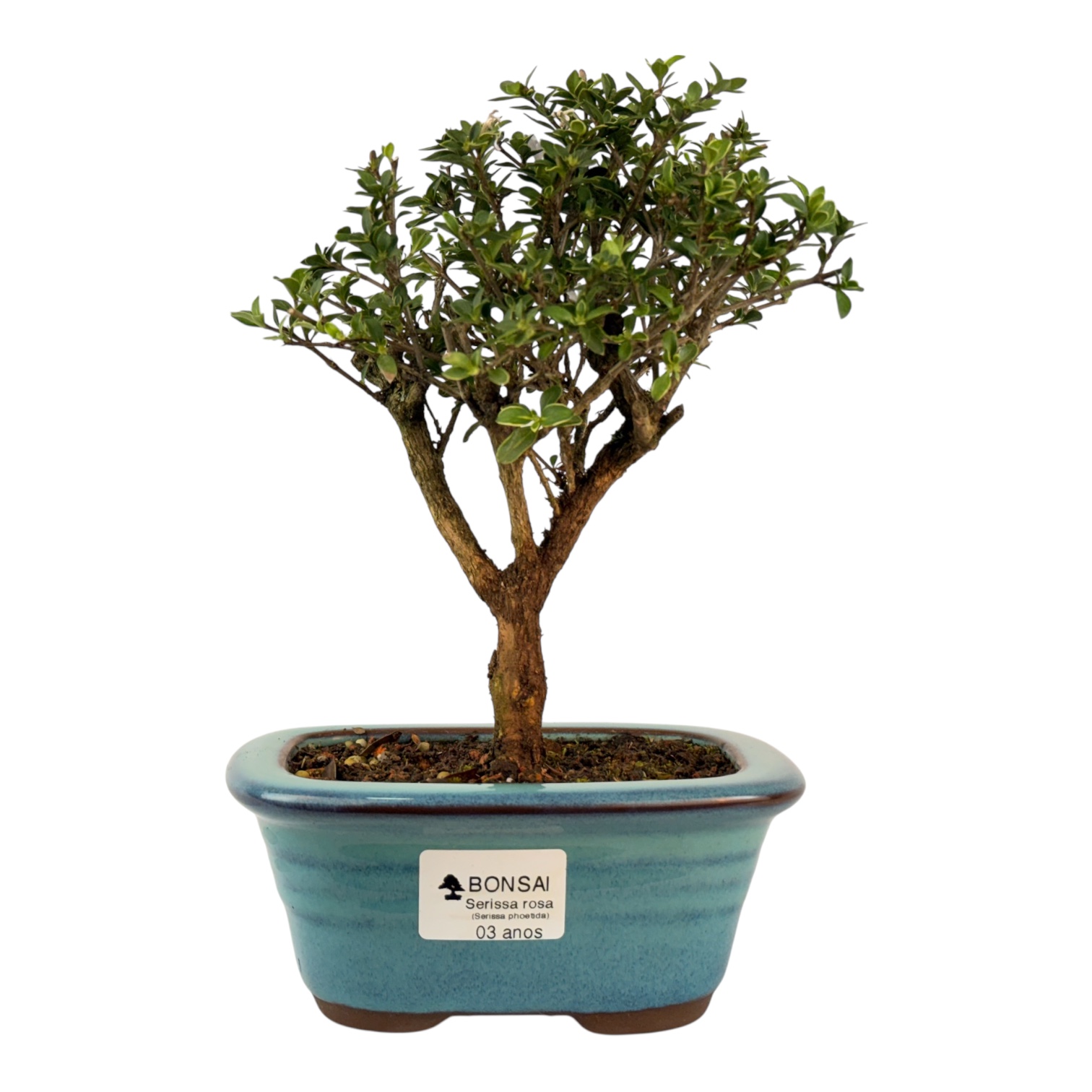 Características: Arbusto perene de folha verde ovalada de reduzida dimensão, existem diferentes variedades, a mais comercializada como Bonsai é a Serissa Rosa e é produzida na China, existem ainda a Serissa Japônica e a Serissa de Shangai (menos comuns no nosso mercado), todas possuem uma versão variegata (de folhas brancas e verdes), a qual se deve a um vírus inócuo que terá afetado a planta mãe na origem.